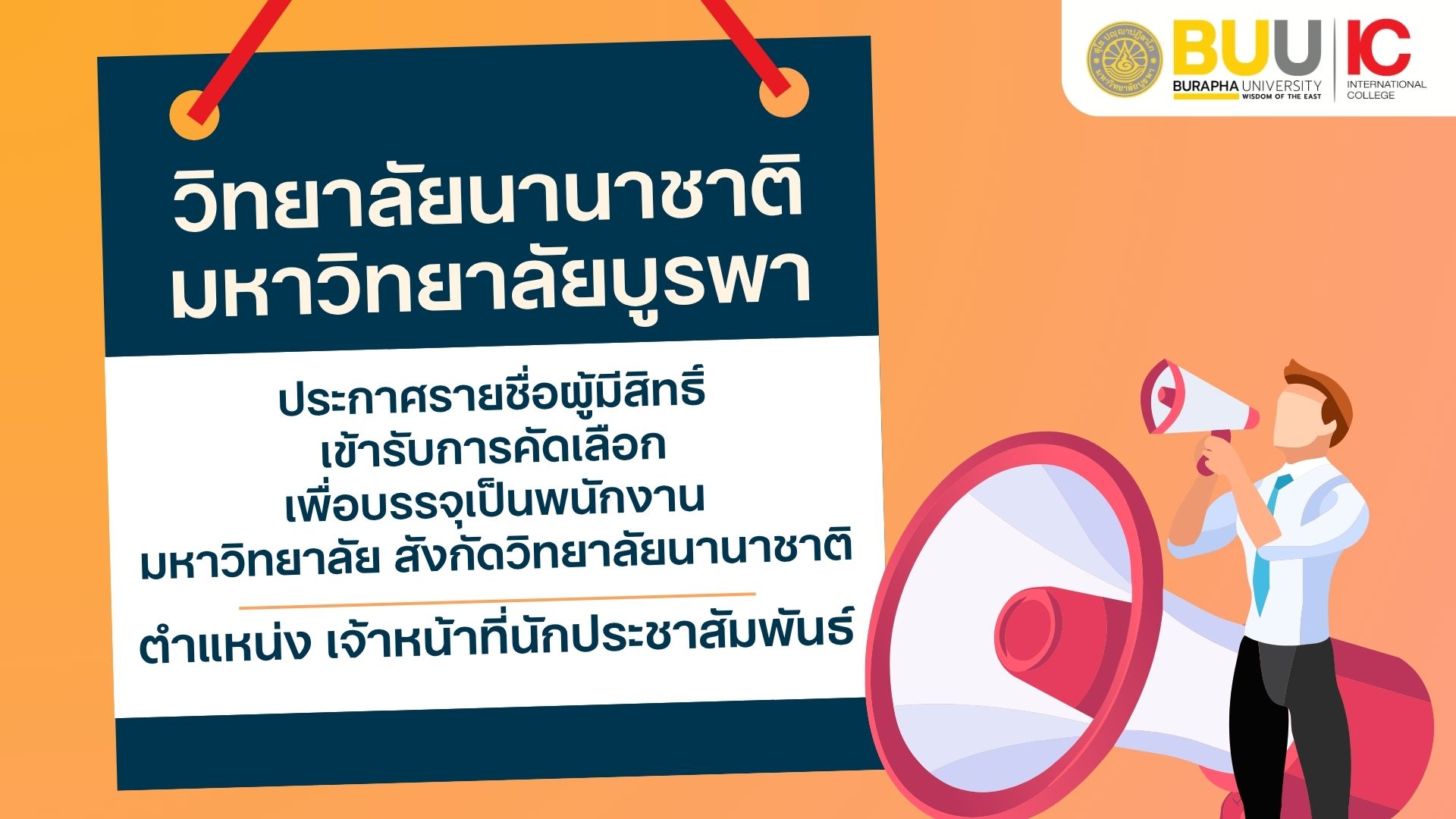 ให้ผู้มีรายชื่อข้างต้นเข้ารับการคัดเลือกบุคคลเพื่อเป็นพนักงานมหาวิทยาลัยบูรพา ดังนี้