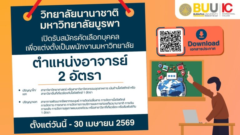 On 31 March 2026, Burapha University, through the Division of Student Affairs and Burapha University International College (BUUIC), in collaboration with the Tourist Police Bureau, organized the “Tourist Police Youth Ambassador Program” (English Curriculum) at the Multi-Purpose Room 115, Student…