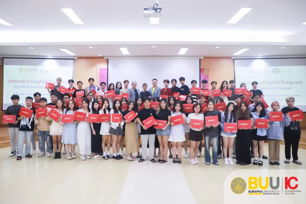 From 22 May to 11 June 2024, BUUIC provided academic services for 52 freshmen students from FPT University’s Cantho Campus in Vietnam. The academic service program was an Intensive English Program that included English courses and cross-cultural experiences such as Buddhist ways of meditation, visiting key landmarks, and sightseeing around Eastern Thailand. The students enjoyed the classroom learning environment and the activities outside the classroom. The English program provides student grades that are transferable to FTP University as earned credit. In addition, the overall program successfully accomplished the learning outcomes requested by FTP University.