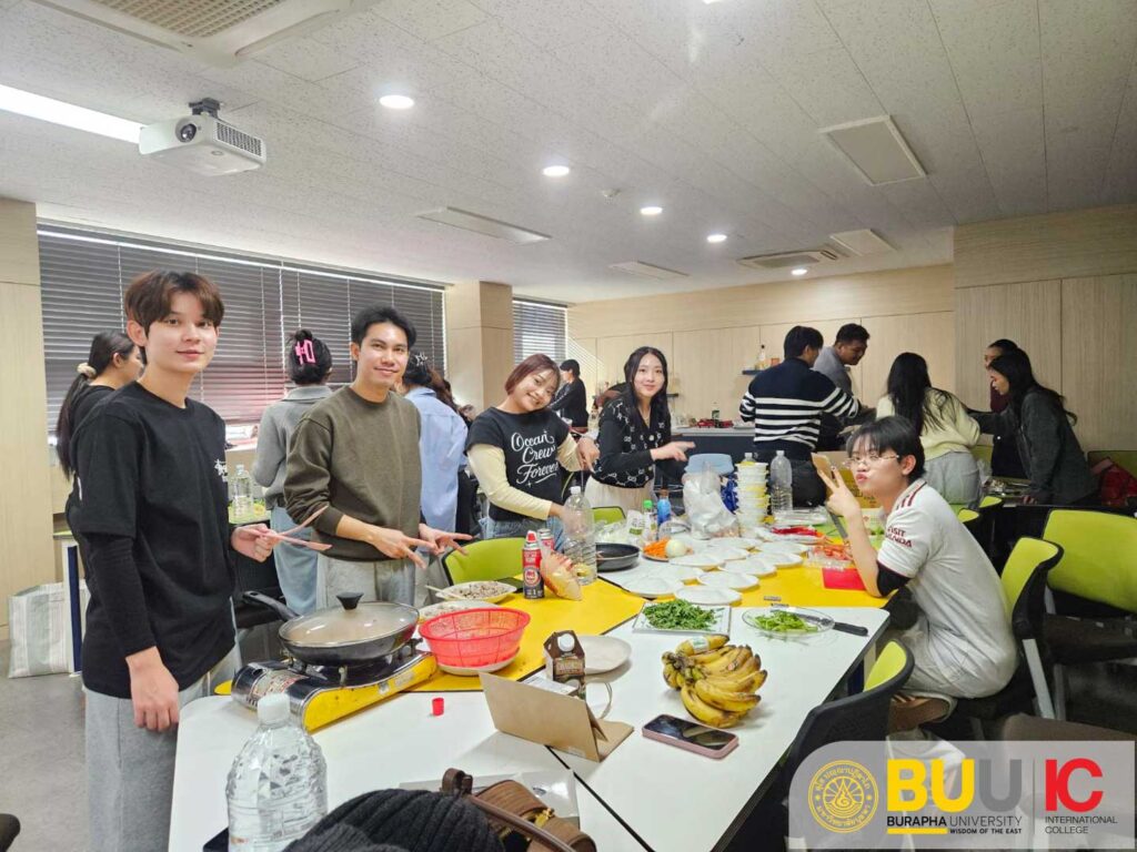 On 14 January 2026, it was the BUUIC students’ turn to host the activities. They prepared Thai food for CNU students and performed a Thai traditional dance, inviting everyone to join in the fun. The lively atmosphere created a wonderful opportunity for students from both countries to build friendships and share their cultures.