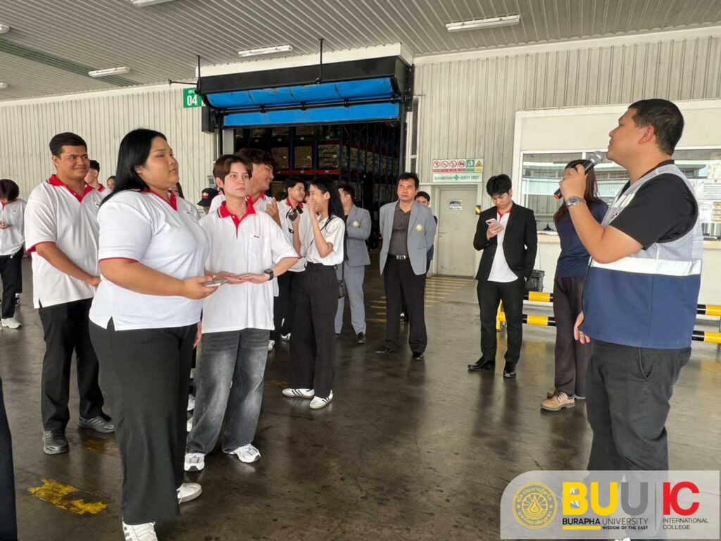 On March 11, 2026, Burapha University International College (BUUIC) organized an educational field trip for students enrolled in the Transport Economics and Transportation and Distribution Management courses to T.C. Pharmaceutical Industries Co., Ltd. in Ban Sang District, Prachinburi Province. The visit, led by Dr. Wichien Rueboon and Ajarn Abhishek, aimed to connect classroom knowledge with real industrial practices in transportation, logistics, and distribution management. Students were welcomed by company representatives and learned about the organization’s operations, brand development, and logistics processes, including warehouse management and distribution to domestic centers and export channels via Laem Chabang Port Terminal. The activity provided valuable experiential learning opportunities, allowing students to observe how supply chain and transportation concepts are applied in real business environments. This initiative reinforces BUUIC’s commitment to preparing students with practical knowledge and industry-relevant skills in modern logistics and supply chain management.