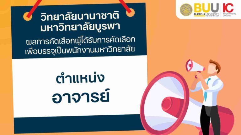 วิทยาลัยนานาชาติ มหาวิทยาลัยบูรพา ประกาศผลการคัดเลือกผู้ได้รับการคัดเลือกเพื่อบรรจุเป็นพนักงานมหาวิทยาลัย ตำแหน่งอาจารย์