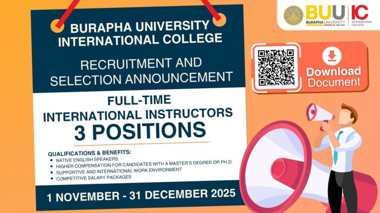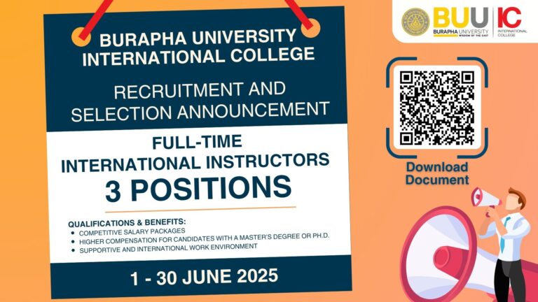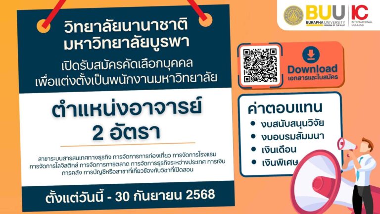 วิทยาลัยนานาชาติ มหาวิทยาลัยบูรพา ประกาศผลการคัดเลือกผู้ได้รับการคัดเลือกเพื่อบรรจุเป็นพนักงานมหาวิทยาลัย ตำแหน่งอาจารย์