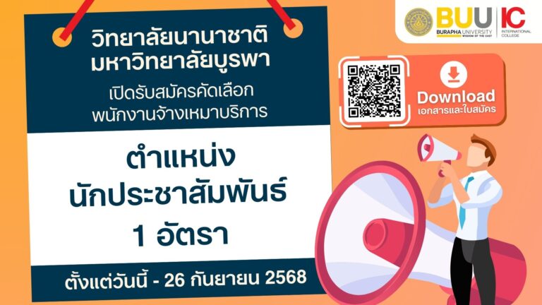 วิทยาลัยนานาชาติ มหาวิทยาลัยบูรพา เปิดรับสมัครบุคคลเพื่อคัดเลือกเป็นพนักงานจ้างเหมาบริการ ตำแหน่ง นักประชาสัมพันธ์