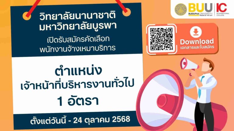 วิทยาลัยนานาชาติ มหาวิทยาลัยบูรพา เปิดรับสมัครบุคคลเพื่อคัดเลือกเป็นพนักงานจ้างเหมาบริการ ตำแหน่ง เจ้าหน้าที่บริหารงานทั่วไป