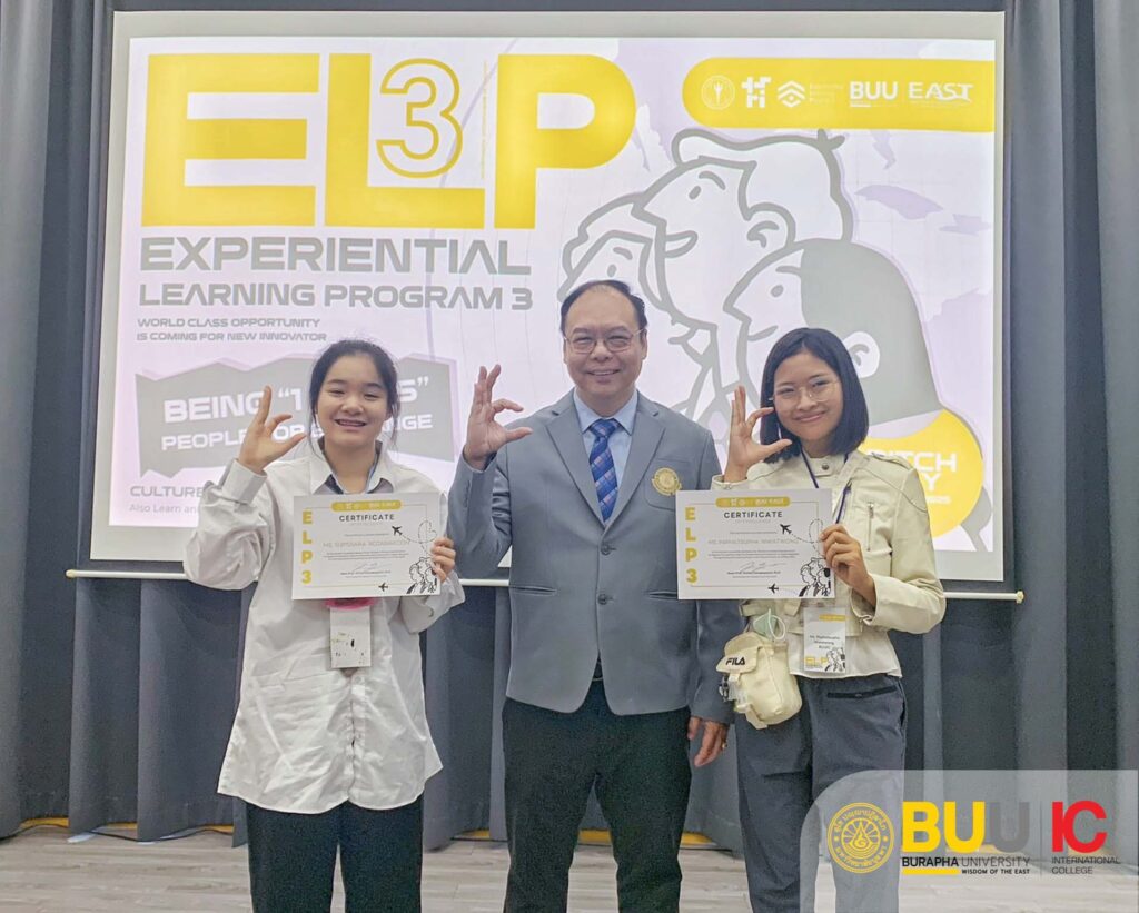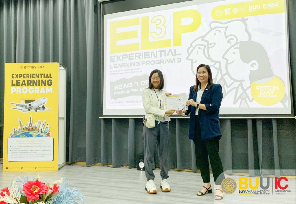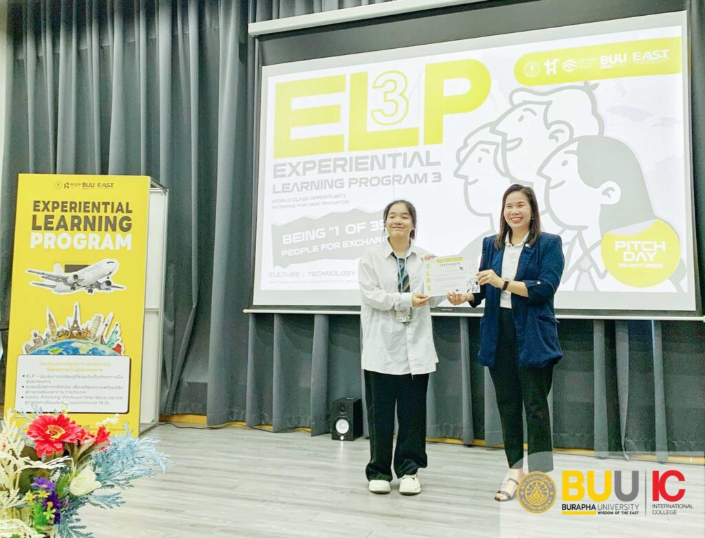 On May 20, there was an ELP Pitching Day event Ms.Paphatsupha Niwatwong (International Business Management) and Ms. Supissara Rojanakoon (Digital Creative Marketing), an International College student, were chosen with a total score of first and second place out of 15 students to represent Burapha University in a regional competition held at Suranaree University of Technology from June 6-9, 2025.