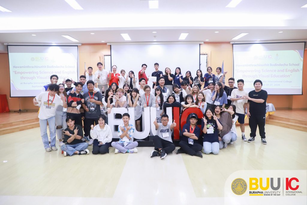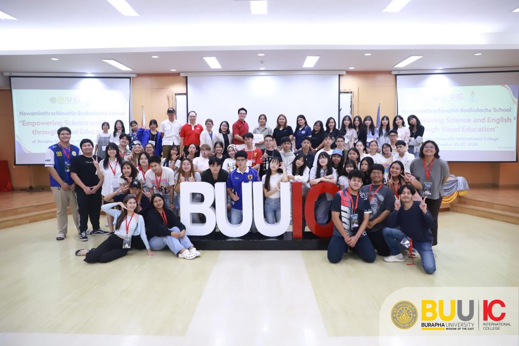 From September 25 – 27, 2024, Burapha University International College (BUUIC) proudly hosted the academic service project “Empowering Science and English through Visual Education,” welcoming 89 high school students from Nawaminthrachinuthit Bodindecha School. This initiative, held under the Memorandum of Understanding (MOU) between BUUIC and Nawaminthrachinuthit Bodindecha School, was designed to provide youth with enriched learning experiences beyond the classroom environment.