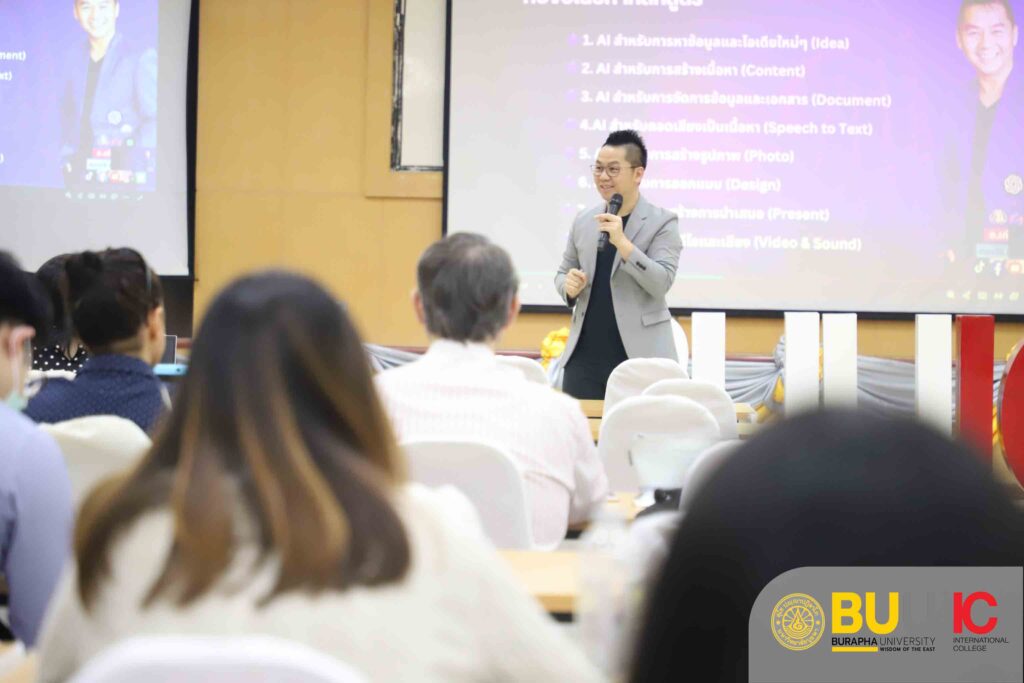 On 28 May 2025, Burapha University International College (BUUIC) continued its forward-thinking momentum with a full-day AI for Education Training Workshop, led by Mr. Phuwanai Wannasorn, an expert in educational technology and digital innovation.