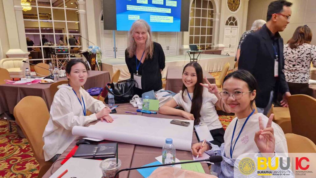 On October 17, 2025, Ms. Wanwisa Changkwian, Instructor at BUUIC, led students from the Language Awareness class to attend the symposium “Transforming Thai Education Using Vygotsky’s Approach” at the Mandarin Hotel, Bangkok. The event aimed to integrate classroom learning with real-world experiences in educational innovation.