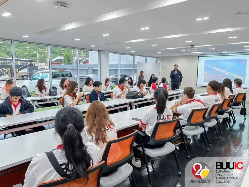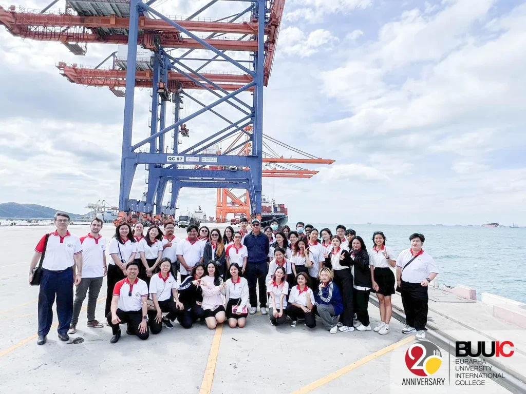 On 27 November 2023, lecturers in International Human Resources (IHR) and Global Business Communication (GBC) took their 1st to 3rd year students to visit Kerry Siam Seaport (KSSP). This trip is part of the B.A. semester field trip program. Moreover, this trip to KSSP aimed to promote students’ classroom knowledge and create new knowledge by experiencing the IHR and GBC program fields in an actual workplace. Students also learned how Customer Social Responsibility (CSR) activities at Kerry Siam Seaport are conducted to collaboratively promote sustainable cities and communities at Ao Udom.