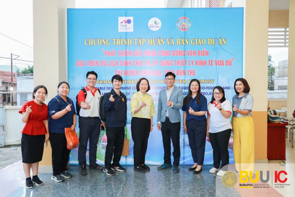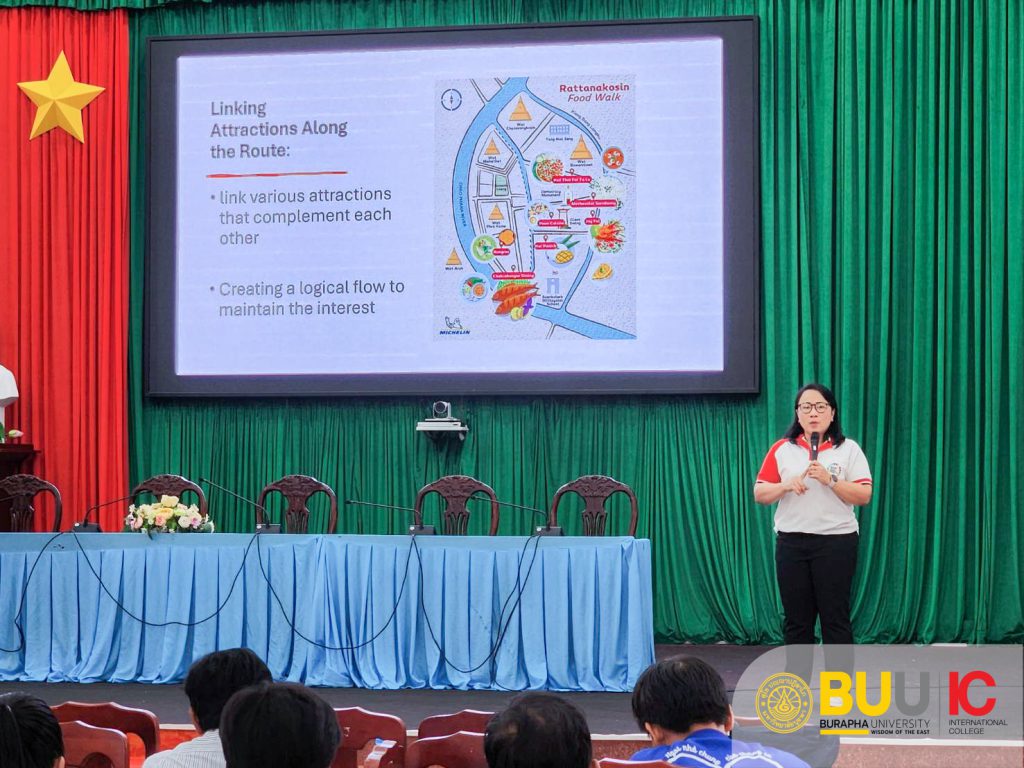 From October 13-16, 2024, Assistant Professor Dr. Krittipat Pitchayadejanant, Associate Dean for Administration and Organization Development at Burapha University International College, along with Dr. Kritta-orn Chewwasang, Chairperson of the Hospitality, Tourism, and MICE Management Department, were honored to serve as guest speakers at a prestigious event organized by the Academic Services Office of Burapha University. This event was held in collaboration with the Thailand International Cooperation Agency (TICA), the Ministry of Foreign Affairs, the Consulate General in Ho Chi Minh City, and the Department of Culture, Tourism, and Sports of Ben Tre Province, Vietnam. The distinguished topics presented focused on the design and management of tourism destinations in Binh Dai District, as well as marketing strategies leveraging artificial intelligence (AI). The Deputy Director-General of the Department of International Cooperation graciously presided over the event, while the Consulate General in Ho Chi Minh City hosted a formal reception in honor of the delegation.
